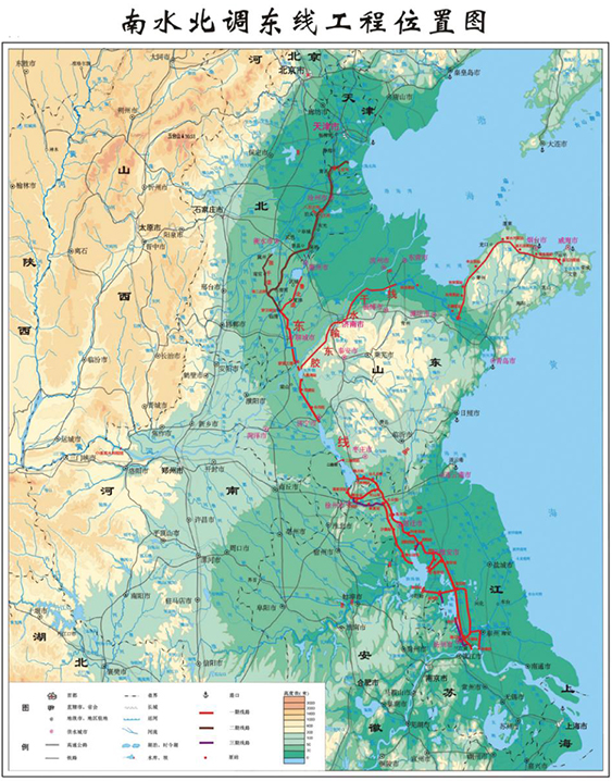 南水北調(diào)東線工程是利用江蘇省已有的江水北調(diào)工程,逐步擴(kuò)大調(diào)水規(guī)模并延長(zhǎng)輸水線路。東線工程從長(zhǎng)江下游江蘇省揚(yáng)州市江都區(qū)抽引長(zhǎng)江水,利用京杭大運(yùn)河及與其平行的河道逐級(jí)提水北送,并連接起調(diào)蓄作用的洪澤湖、駱馬湖、南四湖、東平湖。出東平湖后分兩路輸水:一路向北,在位山附近經(jīng)隧洞穿過(guò)黃河,輸水到天津;另一路向東,通過(guò)膠東輸水干線經(jīng)濟(jì)南輸水到煙臺(tái)、威海。東線工程調(diào)水規(guī)模為148億立方米,規(guī)劃分三期建設(shè)。