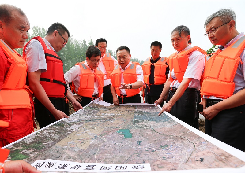 李國(guó)英勘察繞陽(yáng)河決口堤段