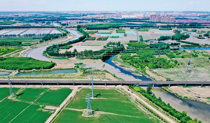 2022年5月12日,天津市境內(nèi)的屈家店水利樞紐開(kāi)閘放水,永定河865公里河道實(shí)現(xiàn)自1996年斷流以來(lái)首次春季全線通水,并與全線貫通的京杭大運(yùn)河實(shí)現(xiàn)世紀(jì)交匯,再現(xiàn)百年以來(lái)首次兩水匯合景象。 水利部供圖