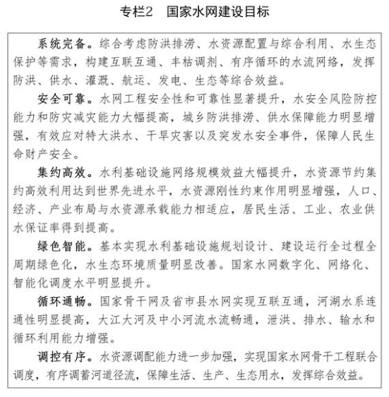 到2025年,建設(shè)一批國家水網(wǎng)骨干工程,國家骨干網(wǎng)建設(shè)加快推進(jìn),省市縣水網(wǎng)有序?qū)嵤ρa(bǔ)齊水資源配置、城鄉(xiāng)供水、防洪排澇、水生態(tài)保護(hù)、水網(wǎng)智能化等短板和薄弱環(huán)節(jié),水旱災(zāi)害防御能力、水資源節(jié)約集約利用能力、水資源優(yōu)化配置能力、大江大河大湖生態(tài)保護(hù)治理能力進(jìn)一步提高,水網(wǎng)工程智能化水平得到提升,國家水安全保障能力明顯增強(qiáng)。