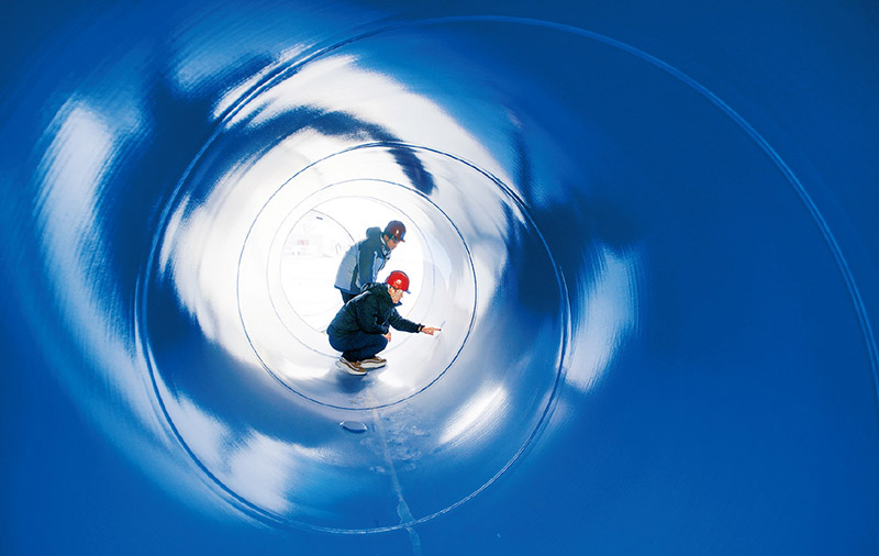北京南水北調配套工程大興支線機場連接線全長14公里,是南水北調中線進京第二通道大興支線的組成部分。工程采取地下曲線頂管等管道建設新技術,將為北京大興國際機場供水廠提供雙水源保障。圖為2023年2月6日,技術人員在檢查管道質量。 新華社記者 李欣/攝