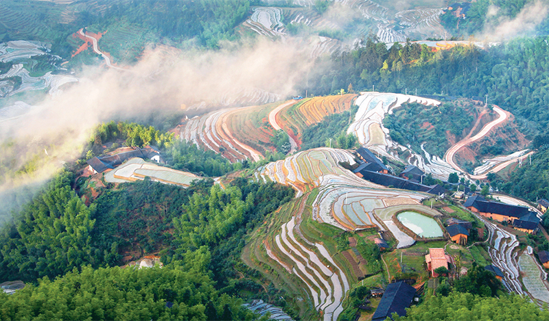 近年來,水利部門堅持山水林田湖草沙一體化保護和系統(tǒng)治理,扎實推進水土流失綜合治理,強化江河湖庫生態(tài)保護治理。圖為入選2022年度(第九批)世界灌溉工程遺產(chǎn)名錄的江西省贛州市崇義縣上堡梯田,該工程包含完善的農(nóng)田水利灌溉系統(tǒng)和良好的生態(tài)保護系統(tǒng),充分體現(xiàn)了尊重自然、順應(yīng)自然、保護自然的理念。 水利部供圖 盧鑫平/攝