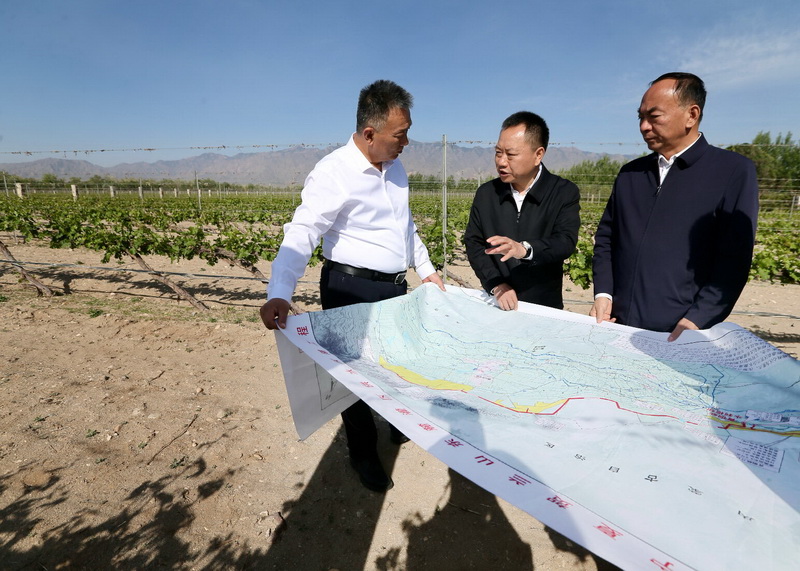 李國(guó)英調(diào)研賀蘭山東麓灌區(qū)高效節(jié)水灌溉情況