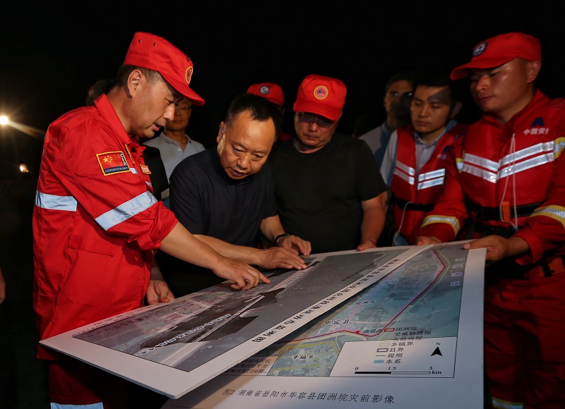 6日晚,李國英現(xiàn)場勘察團(tuán)洲垸堤防決口情況,詳細(xì)了解人員轉(zhuǎn)移、垸區(qū)水情、封堵準(zhǔn)備等情況,與地方和有關(guān)部門負(fù)責(zé)同志、技術(shù)專家、搶險人員會商研究堤防決口封堵方案。7日上午,李國英來到與團(tuán)洲垸緊臨的錢糧湖南垸、新生垸,先后勘察錢團(tuán)間堤、悅來河、新生間堤、藕池河以及部分安全區(qū)圍堤情況,與有關(guān)各方對堤防防守方案進(jìn)行深入研究。