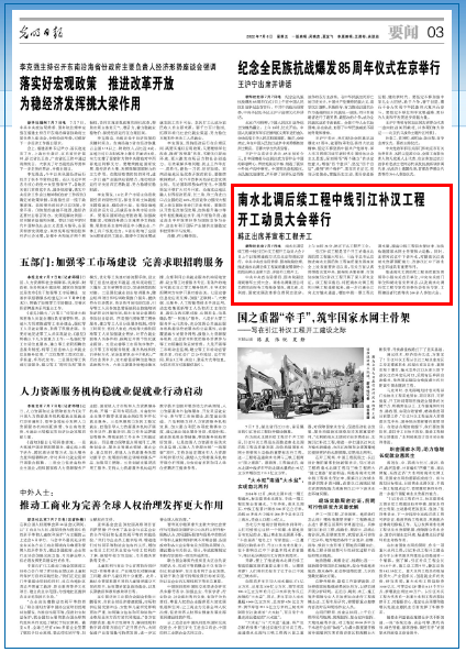 新華社北京7月7日電 南水北調(diào)后續(xù)工程中線引江補(bǔ)漢工程開工動員大會7日上午以視頻連線方式在北京和湖北舉行。中共中央政治局常委、國務(wù)院副總理、推進(jìn)南水北調(diào)后續(xù)工程高質(zhì)量發(fā)展領(lǐng)導(dǎo)小組組長韓正出席大會,并宣布工程開工。