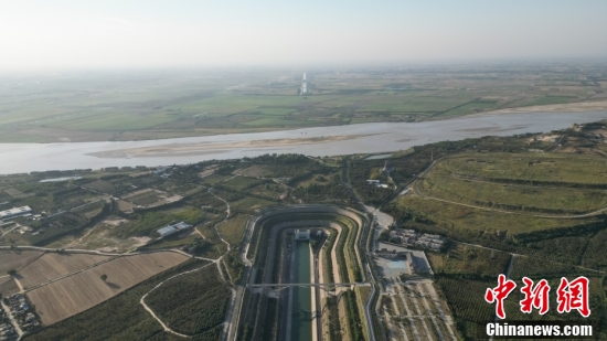 南水北調(diào)中線總干渠穿黃隧洞入口處。(無人機(jī)照片)