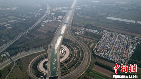 日前,記者隨“奇跡中國 天河筑夢”南水北調(diào)中線工程網(wǎng)絡(luò)主題活動采訪團(tuán),來到河北省石家莊市西北部正定縣西柏棠鄉(xiāng)新村,南水北調(diào)中線總干渠在這里通過滹沱河倒虹吸工程穿河而過。據(jù)介紹,該工程是南水北調(diào)中線干線工程上一座大型渠穿河交叉建筑物,與全線其他一系列控制性工程一起,承擔(dān)著總干渠的輸水調(diào)度任務(wù)。圖為航拍位于石家莊的南水北調(diào)滹沱河倒虹吸工程。(中國互聯(lián)網(wǎng)發(fā)展基金會中國正能量網(wǎng)絡(luò)傳播專項(xiàng)基金資助支持)(無人機(jī)照片)